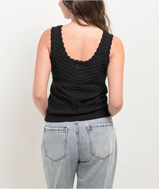 Camiseta corta Daisy Street Crinkle Knit Negra